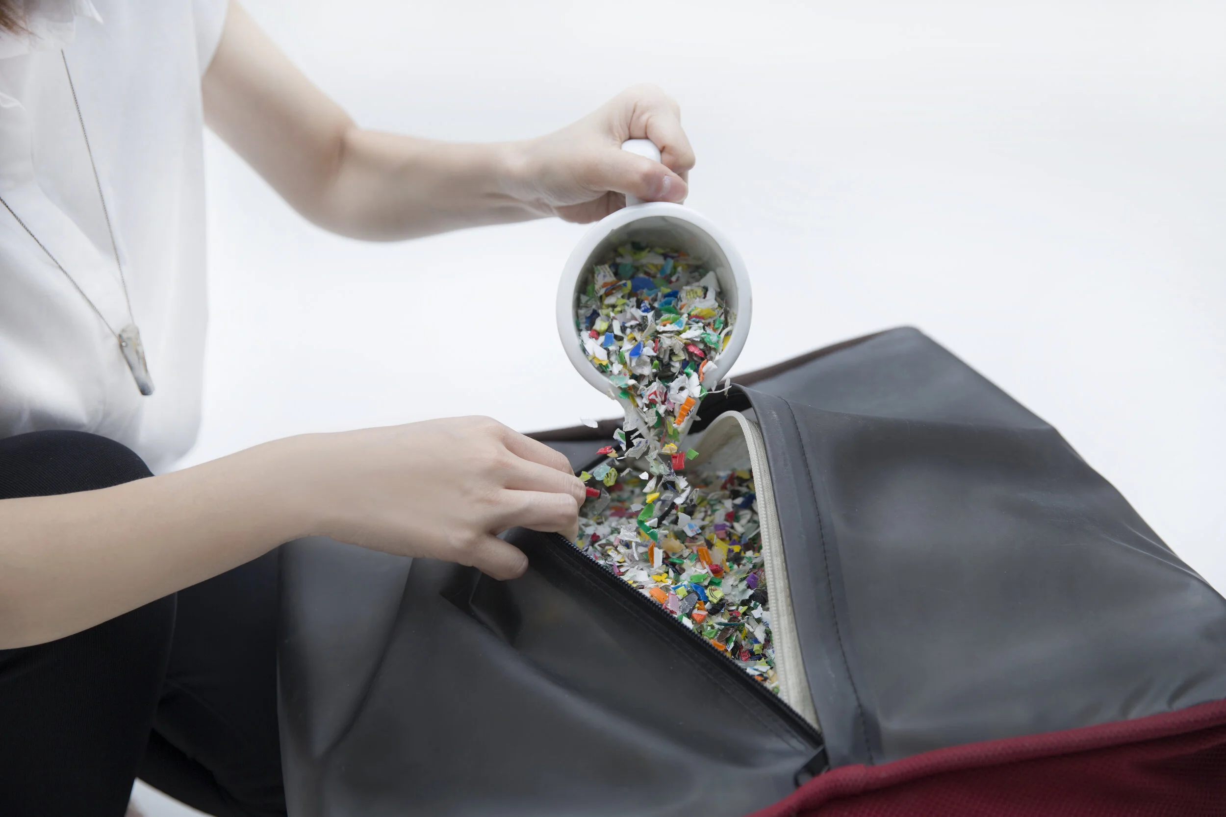 PP Capsule - a reborn of PP plastic cap into a flexible beanbag chair for living rooms. With the great craftsmanship supported by local seamstresses, one PP Capsule up-cycling 4,000 plastic caps, wrapping them in eco-friendly fabrics and turning it into a common furniture with care and love to the community and our environment.